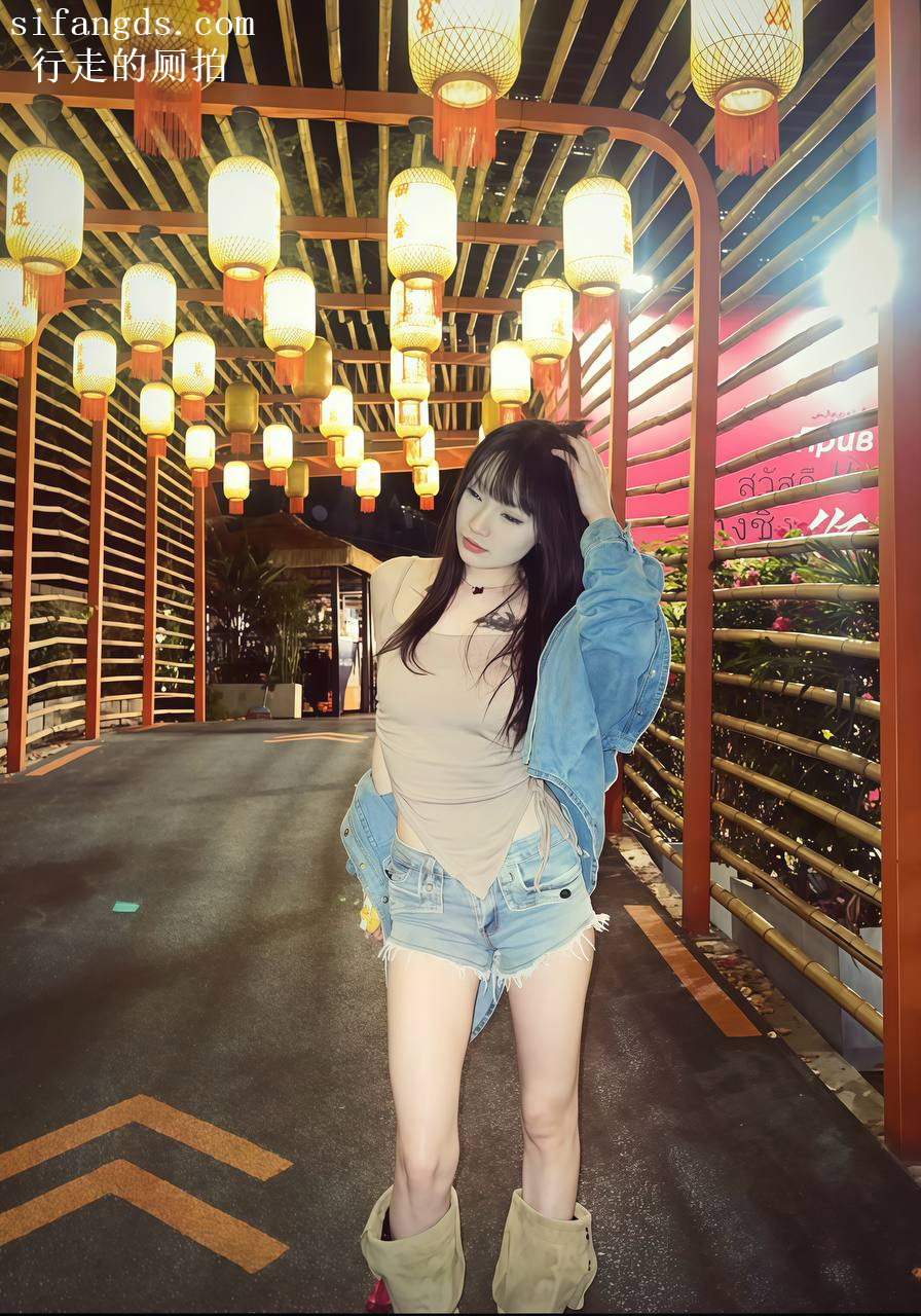 (空城原创)超短蛋糕裙小少妇逛街,性感黑N包裹肉臀