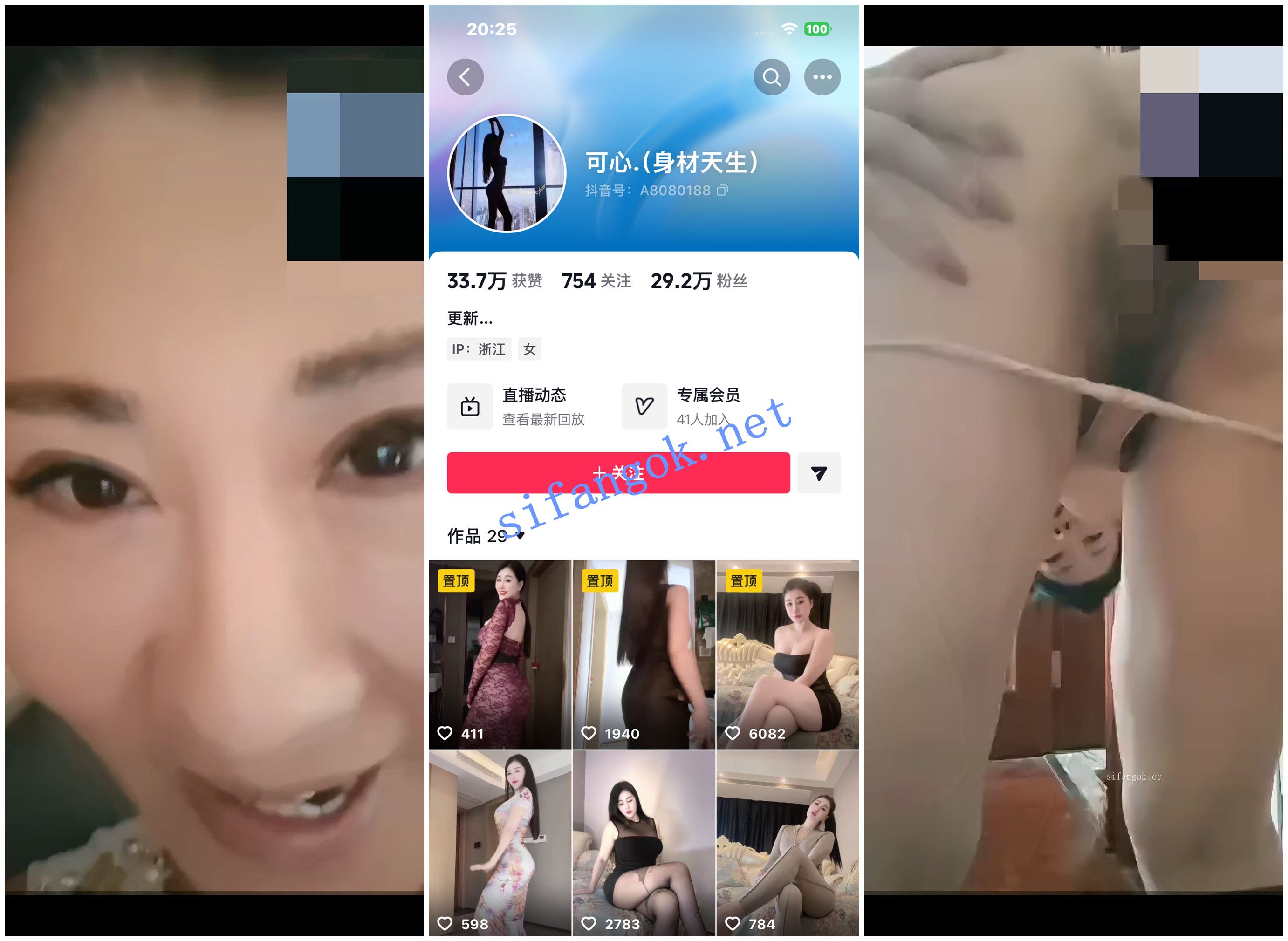 【抖音福利】风骚高挑丰满御姐【可心】1V1裸聊身材展示