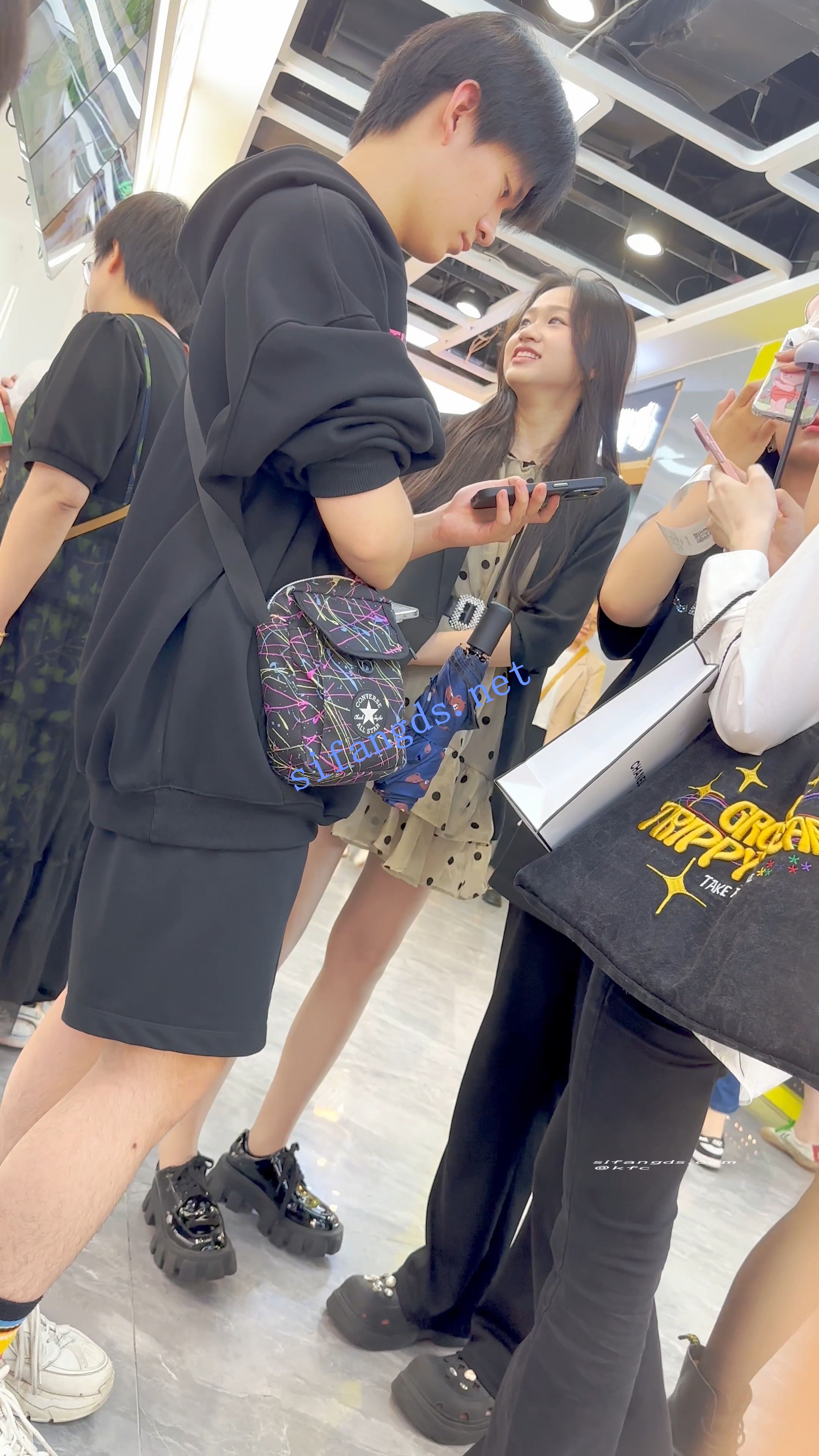 短裙学生妹和男女同学逛街·肉丝微透无痕内低角度CD 长相清纯可爱。拍摄时间长,