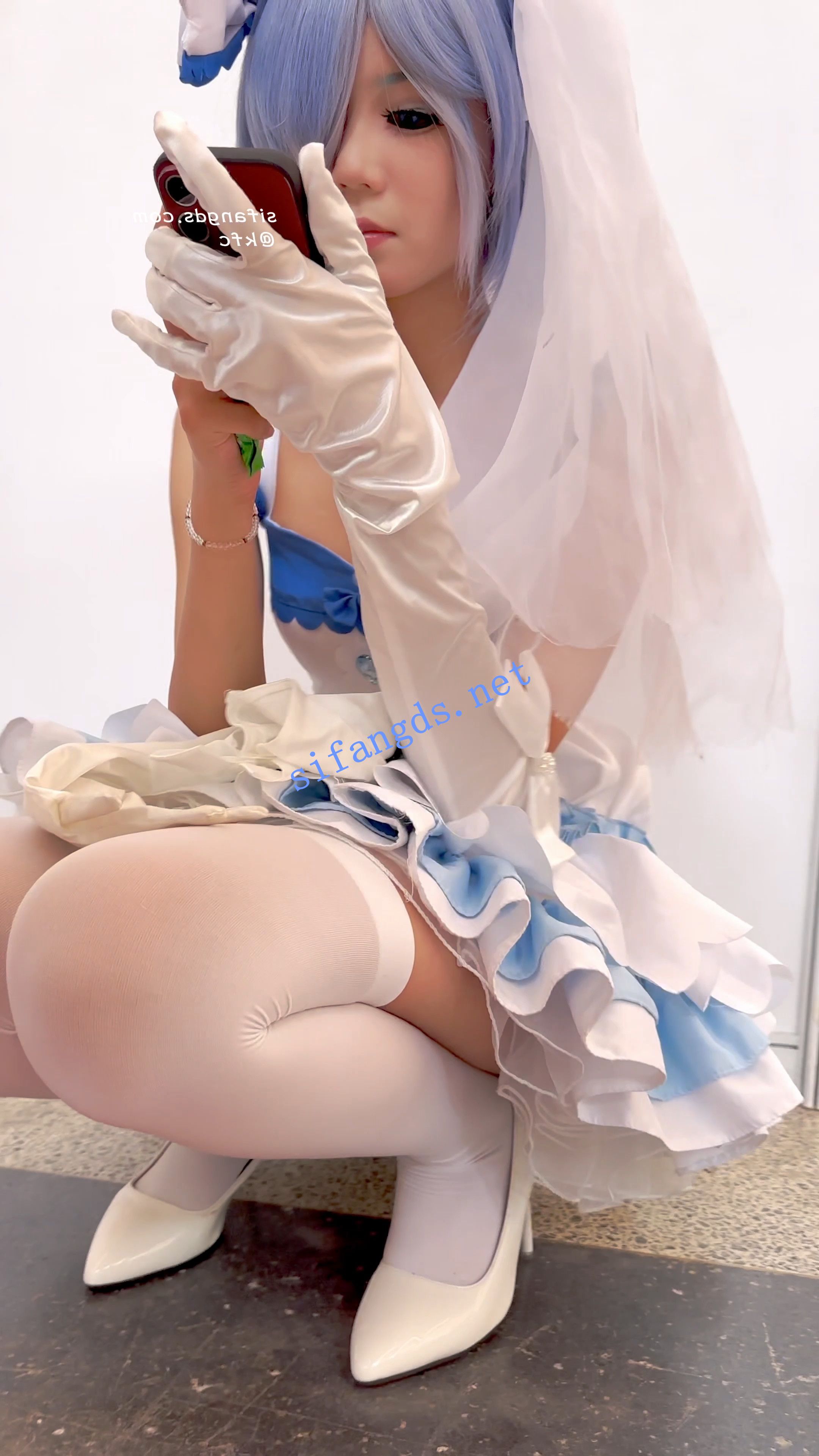 【KFC】顶级身材COSER蕾姆学生妹·过膝白丝婚纱短裙白内可爱 [某房同步]