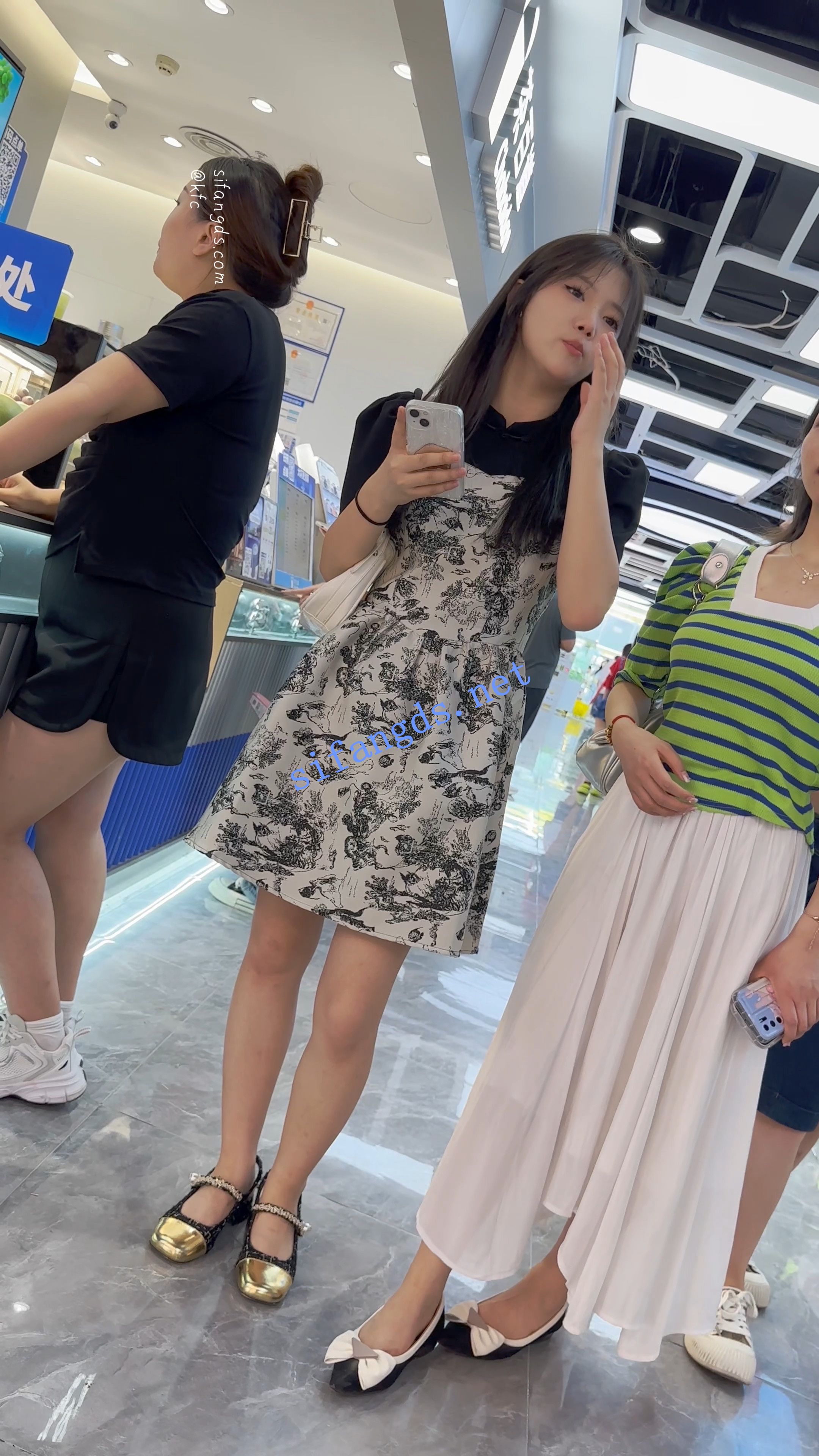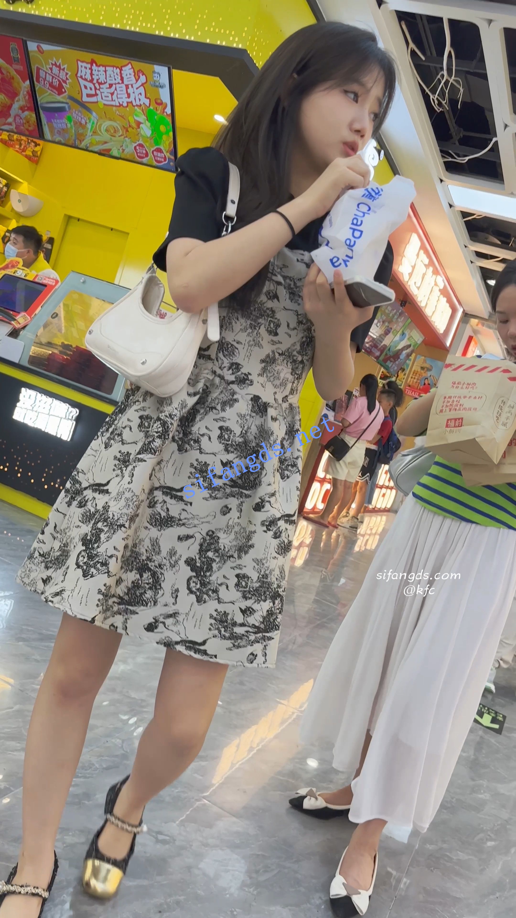 [某房同步]【KFC】长裙学生妹和舍友逛街·黑边白色内内低角度超清CD
