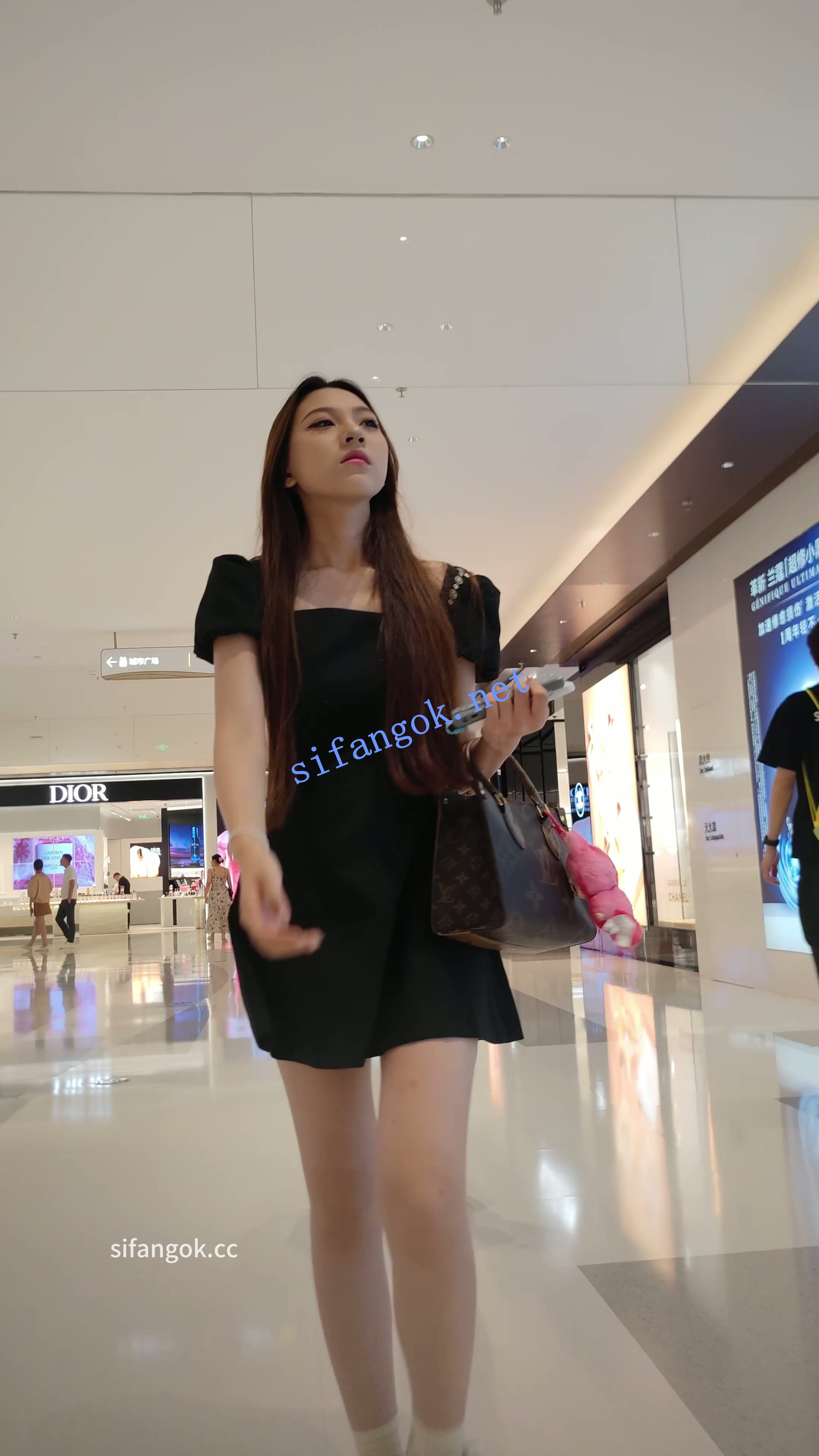 【CSCD】黑色连衣裙美女和闺蜜逛街买东西,黑色窄内