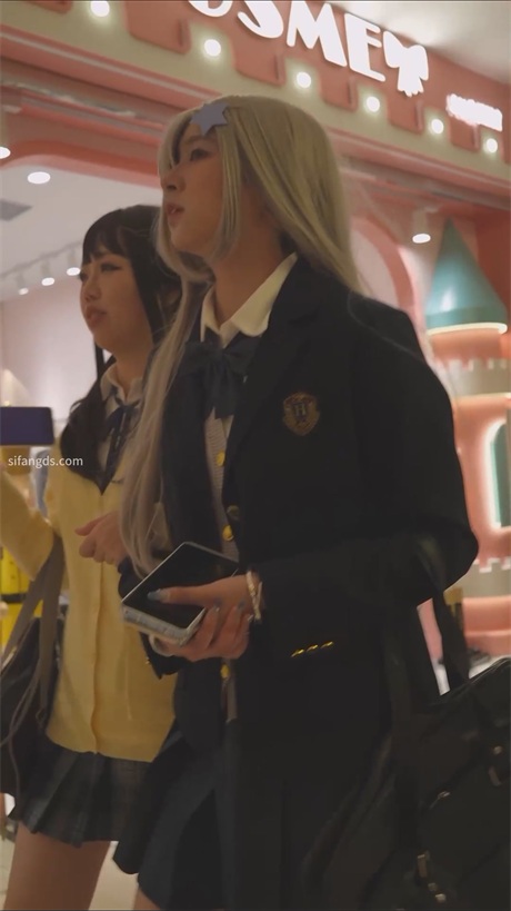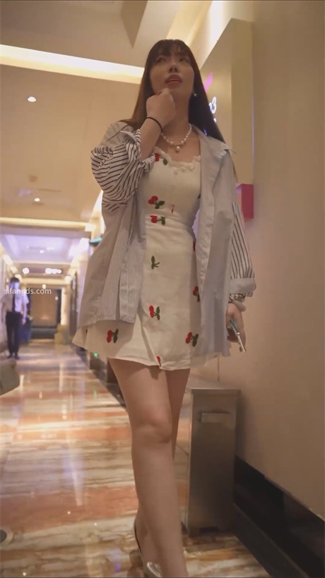 【KFC】吊带长裙美女和闺蜜逛街❤️白色微透内内前后CD