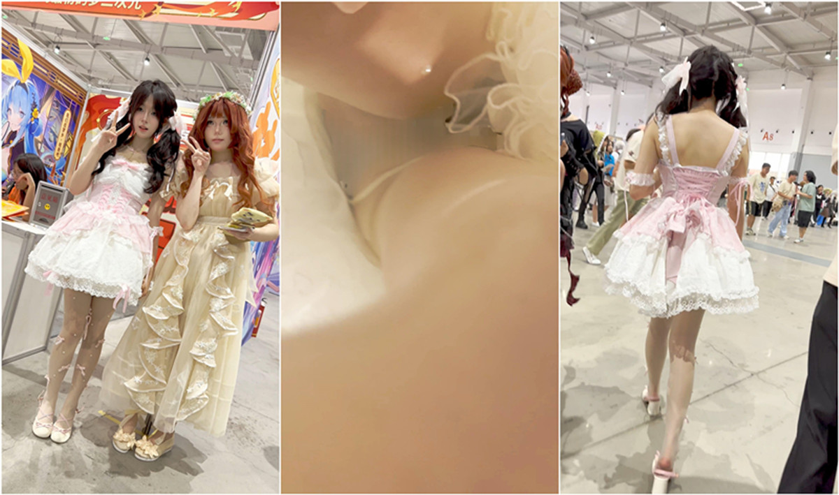 【KFC】洛丽塔萌妹逛累了❤️坐地上男友守护也露透明丝袜黑内